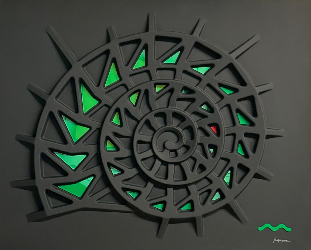 The plexiglass inserts, polished opal, are applied after lacquering, following a right scheme of color balance. Nothing is left to random.
